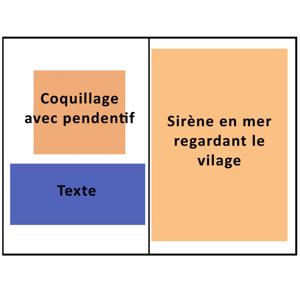 Tandis que je visualise le livre dans son ensemble, je me projette dans les actions principales et le type d’images voulu. Pour ces raisons, je place dans les blocs ce que je vais y dessiner. Je peux donc choisir si une image prendra une page entière ou une double page pour les événements impactants. Cependant, si j’illustre un texte avec quelques images, ceci ne signifie pas que son importance est moindre. Je décide si la composition de l’image me convient vis-à-vis de l’action en cours.