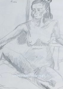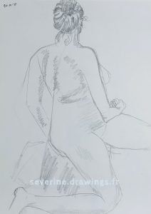 Les séances de modèle vivant sont des entraînements, avec des poses d’1, de 5 , de 10 et de 15 minutes. Le modèle change de position à la fin de chaque durée. Les premières poses très courtes permettent de s’échauffer et de prendre l’habitude des rapports de chaque dimension du modèle.